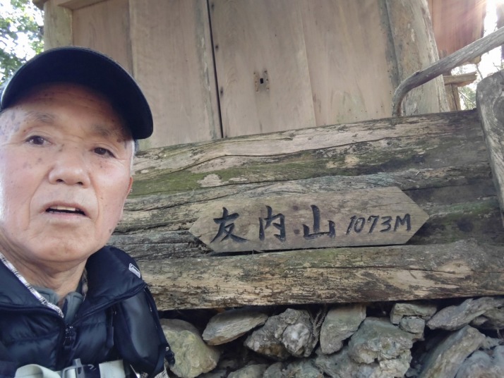 登山を始めて28年、何時も我が家から南南西に聳える剣山方向を見ると丸笹山の向こうに剣山が見える。一番手前に穴吹川を挟んで左右に半平山と友内山が門番の如く聳える。何方も1000峰で今まで登ったことが無く登山記録を作り始めて997回が終わり後3回で区切りの1000回。友内山、半平山、新年の雪の剣山で1000回達成したいので快晴の友内山を制覇。次回は年内に半平山へ。行動 3時間 距離 2.7km 歩数 8000歩