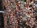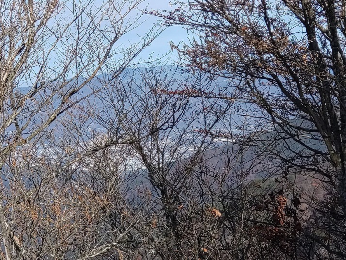 | 我が家から見ると高越山の裾野の向こうに奥野々山から続く尾根の最後の山、ひときわ大きく見え、右側が切れ落ちた山の半平山(1016m)。 古宮から半平へ、半平小学校を越えて最終民家辺りから林道へ、空き地に駐車し準備して出発。枯葉が登山道を埋め尽くし解り辛い、テープを見つけて進むも右往左往、昔25000分の地図を片手にした登山を思い出しながらの山行。今年一番の登り甲斐のあった山、登山をしたと言う感覚を味わった山でした。私も黄色のテープを持って行き登山道の木々に括ってきました。山頂から見える脇町インターの高速道路の向こうに我が家があると思う感無量でした。 行動 5時間 距離 4.5 km 歩数 12000 歩 |
